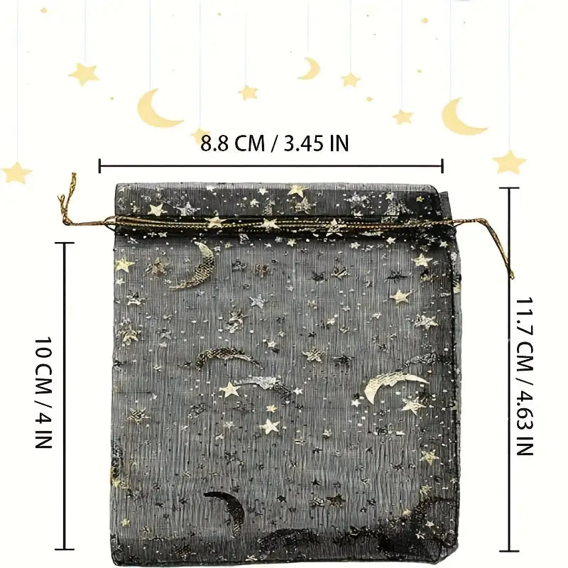 Packung Schwarz oder Weiß Metallic Folie Organza Beutel mit Bindfäden, Astrologie Themen Stoff Geschenkbeutel für Partygeschenke, Schmuckverpackungen etc.